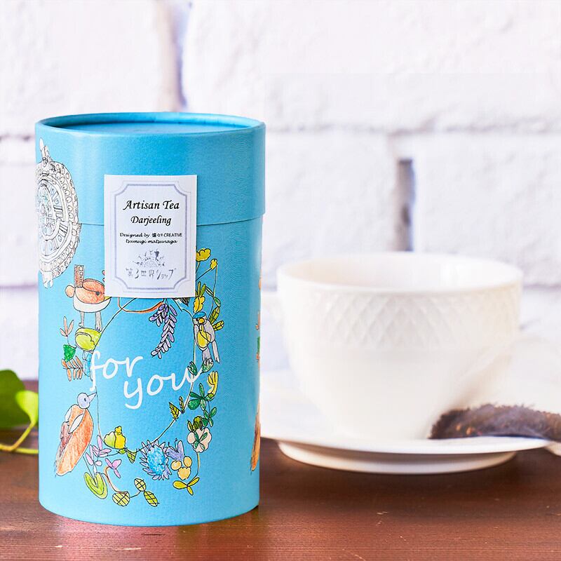 ダージリンティーは松永 紬さんの「とりたちのリース」のアートワークがデザインされたパッケージ。